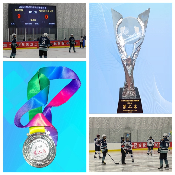 近日,由黑龙江省教育厅、黑龙江省体育局联合主办的2025年黑龙江省学生冰球联赛在哈尔滨顺利落幕。本次联赛高校组汇聚了哈尔滨体育学院、哈尔滨工业大学、黑河学院等五支省内高校劲旅。我校北疆龙冰球队,顽强拼搏,奋勇争先,最终斩获高校组亚军。