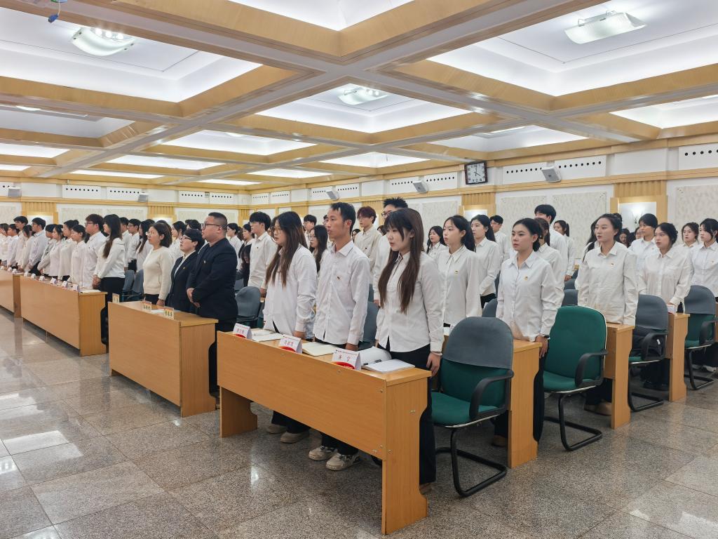 为深入学习贯彻党的二十届四中全会精神,推动马克思主义中国化最新成果浸润青年,提升团员青年综合素养,增强团组织凝聚力战斗力,彰显共青团育人职能。11月5日,我校在明德楼五楼会议室举行第二十八期“青年马克思主义者培养工程”大学生骨干培训班开班仪式。党委副书记姜国玉,学生工作部部长郑羽、马克思主义学院院长杜英、宣传统战部副部长张巍、团委副书记张微以及来自校级学生组织和二级学院的101名“青马工程”大学生骨干参加开班仪式,仪式由团委组织部副部长肖尧主持。