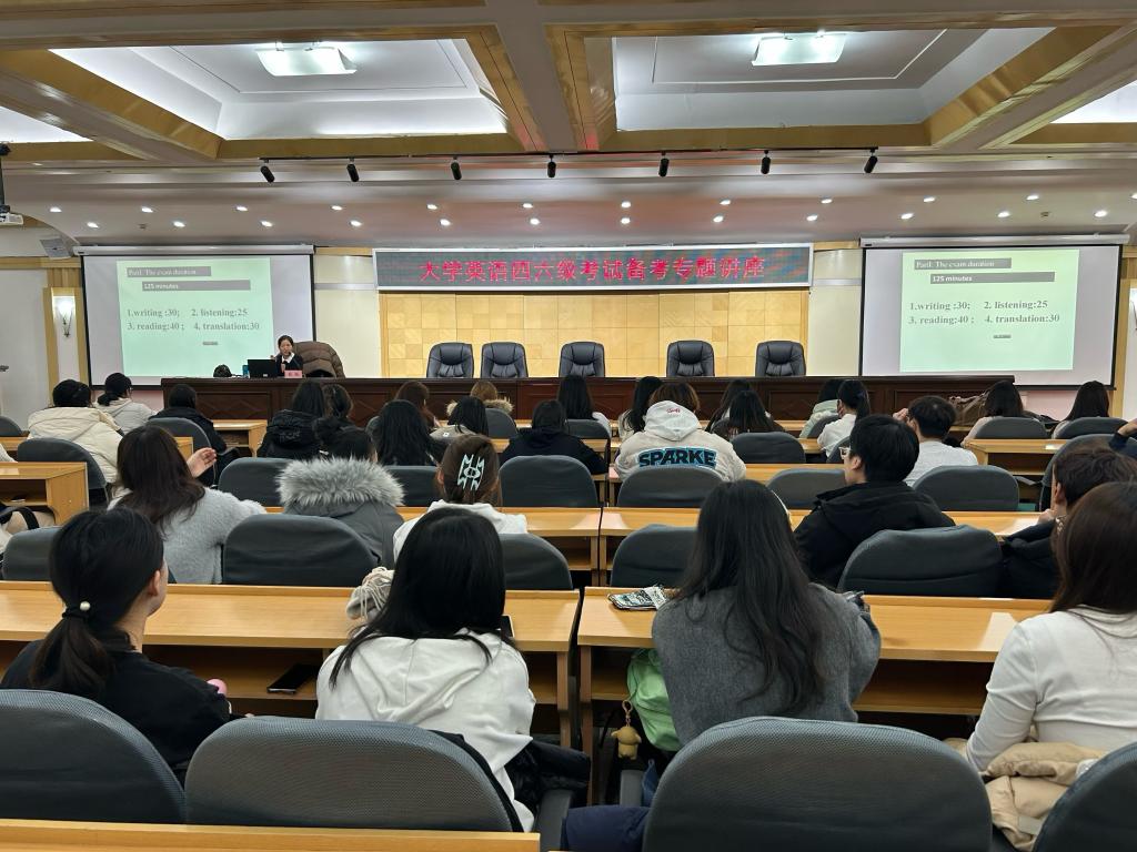 为深化学风建设,助力我校学子精准掌握科学备考策略与实用应试技巧,科学、高效备战全国大学英语四六级考试。11月12日,在明德楼五楼多功能厅组织开展“学风领航·交流分享——全国大学英语四六级考试备考专题讲座”,本次讲座特邀通识教育学院张敏教授担任主讲人,吸引100余名备考学子到场学习。