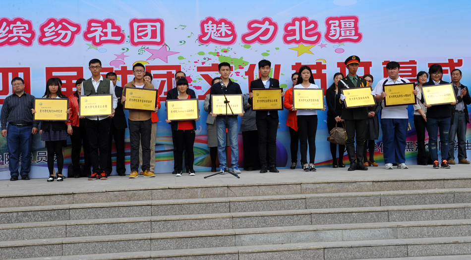 本网讯(特约记者 张英慧)5月27日下午,由校团委主办、学生社团联合会承办的主题为“缤纷社团魅力北疆”黑河学院第四届社团文化节开幕式暨社团成果展在明德楼前隆重开幕。本次社团文化节受到学校党委及俄罗斯布拉戈维申斯克国立师范大学的高度重视,学校党委副书记杨宏、李廷栋,副校长吕巧凤,总会计师宁艳杰,各院党总支书记、学校职能部门负责人、各社团代表及俄罗斯高校学生代表共2000余人参加了开幕式。