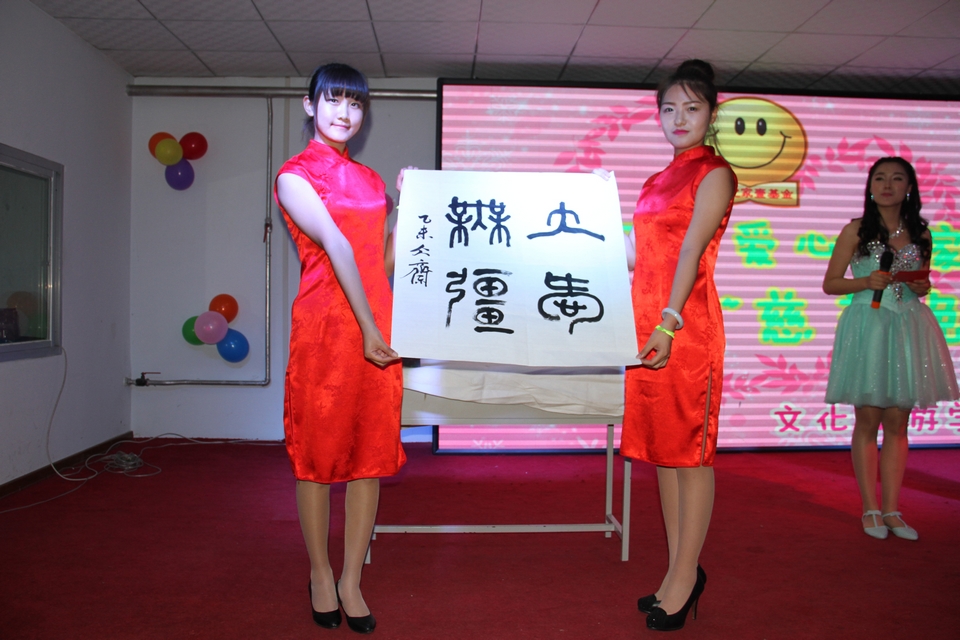 晚会开始前,通过回顾爱心之家壹基金的发展历程,展现了爱心之家成员们的爱心付出,充分表达了将爱心传递下去的决心和毅力。在温馨的氛围中晚会拉开了序幕。相声、小品、哑剧等表演,赢得现场观众的阵阵掌声。伴着《青花瓷》的悠扬乐曲和舞蹈演员的曼妙舞姿,杨正阳老师挥毫落笔“大爱无疆”四个字点明了本次活动的宗旨,将晚会推向高潮。