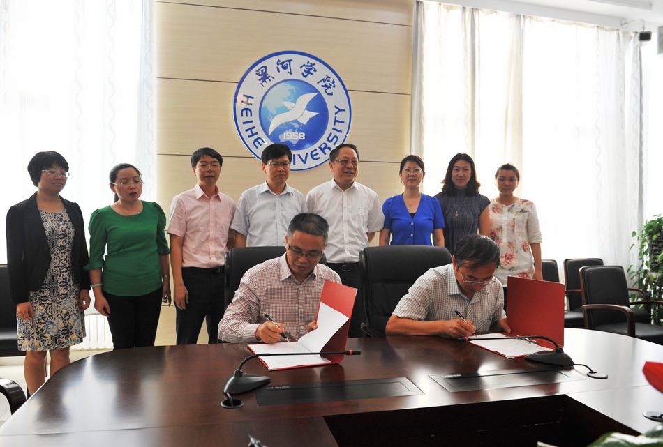 黑河市副市长、研究员鲁世巍博士;暨南大学华侨华人研究院院长、博士生导师曹云华教授,暨南大学华侨华人研究院副院长、博士生导师陈奕平教授及暨南大学华侨华人研究院相关专家、学者;我校副校长宋立权,中俄历史文化与社会发展研究中心主任谢春河教授及相关研究人员共同出席签约仪式。双方就人才培养、科研合作、联合调研、学术交流等事宜达成了基本共识。仪式由科研处处长宁艳红主持。