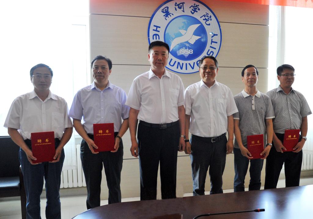 随后,刘爽宣读了聘任我校姜占民、谢春河、亢稚文、彭传勇为黑龙江省社会科学院研究生学院硕士生导师的决定并颁发聘任证书。我校受聘硕士研究生导师代表谢春河教授在发言中表示,在今后的工作中,要认真从事教学和科研工作,努力提高教学和科研水平,为共同培养符合区域经济社会发展需要的高素质应用型人才作出自己的贡献。
