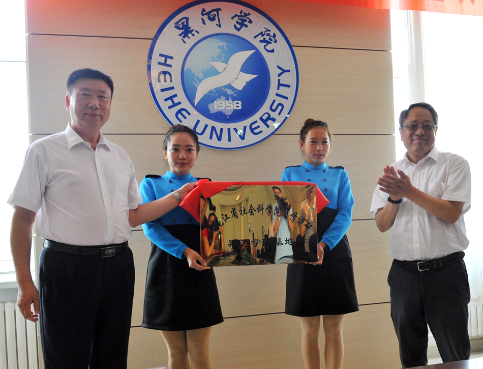 省社科院东北亚及国际问题研究中心主任、《学习与探索》杂志社主编张磊,省社科院俄罗斯研究所所长马友君,省社科院俄罗斯研究所副所长安兆祯;我校科研处长宁艳红,外国语学院院长姜占民,文化旅游学院院长亢稚文,中俄边疆历史文化与社会发展研究中心主任谢春河等相关部门负责人参加了揭牌仪式。
