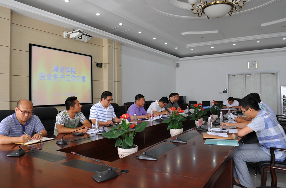 本网讯(特约记者 张铎 摄影 何振东)7月7日下午,以黑河市政府安委办副主任、市安监局副局长李新安为组长的黑河市安委会检查组到我校检查安全生产工作,在明德楼二楼会议室召开了黑河学院安全生产工作汇报会。副校长车永宏出席了汇报会。
