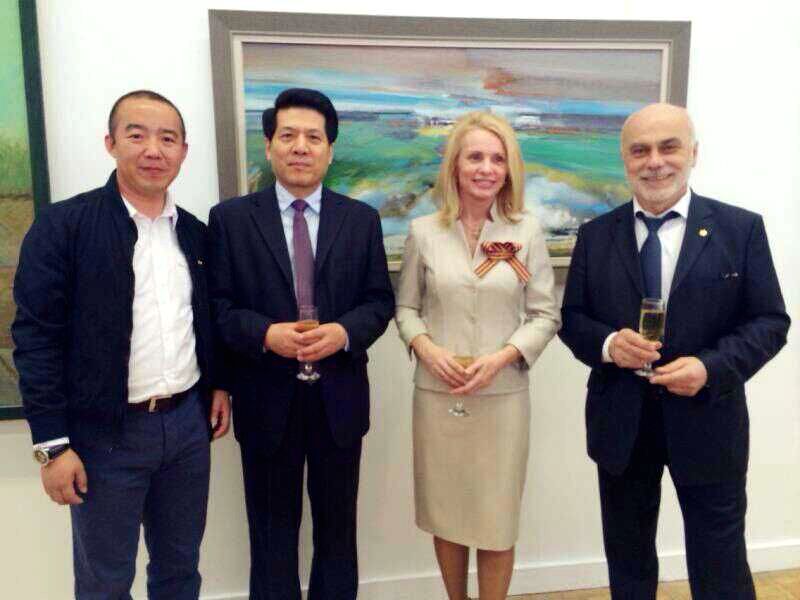 据悉,为纪念中国人民抗日战争暨世界反法西斯战争胜利70周年,5月7日,由中国驻俄大使馆,俄罗斯联邦教科部、文化部、艺术科学院主办,莫斯科苏里科夫美术学院、黑河学院承办,中国留俄学生总会、中国画报杂志社、俄留华毕业生联谊会协办的“胜利礼赞——中俄青年联合美术展”在莫斯科中央美术宫隆重开幕。期间,由我校设计制作的《胜利礼赞——中俄青年联合美术展纪念画册》对本次活动起到了重要的宣传作用,提升了画展的知名度,增加了画展的影响力,受到主办方的充分肯定。美术与设计学院教师牟克作为本次活动策展人之一,他的两幅作品也在联展中展出,得到中俄参观者的高度评价。