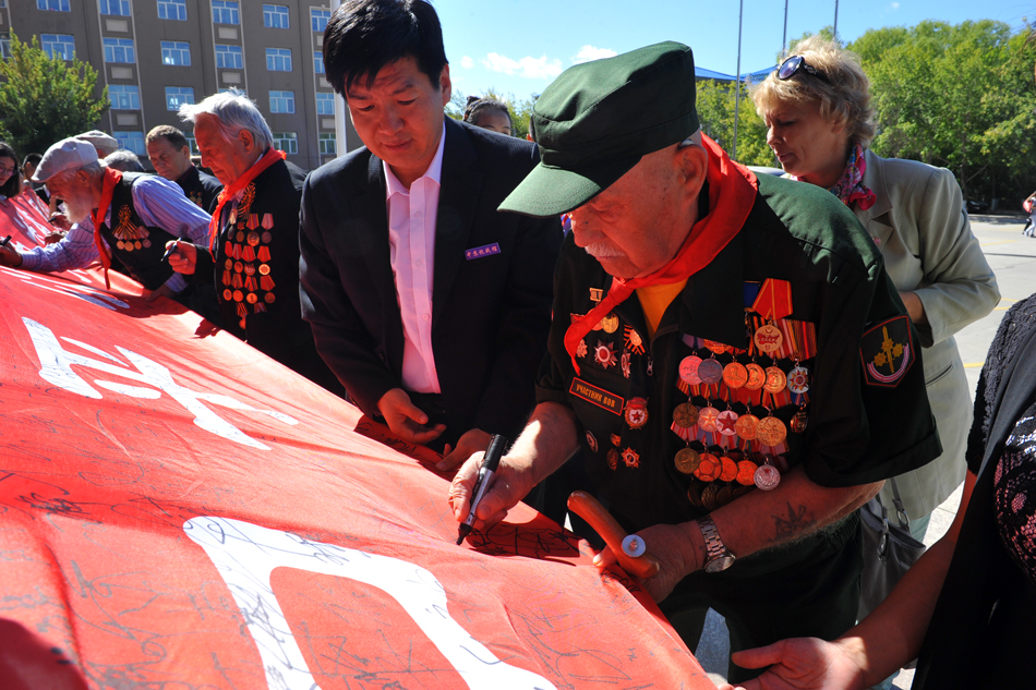 据悉,参加签名活动的俄罗斯老战士平均年龄87,最大的已有96岁,他们有的参加过解放长春、沈阳、牡丹江等地的战斗,和中国人民一起与日本关东军展开殊死搏斗,为打败日本侵略者,取得抗日战争和世界反法西斯战争最后胜利作出了重要贡献。(学生记者 李球 胥涵 周昌健 郑承江 曹崇瑞 王文博)
