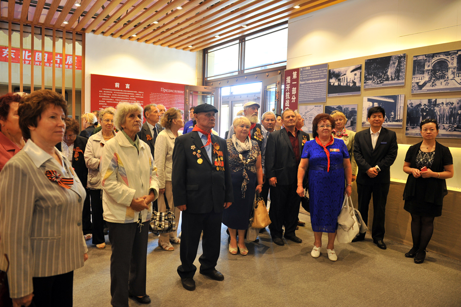 万人签名活动后,俄罗斯老战士和我校师生参观了中俄联合纪念中国人民抗日战争暨世界反法西斯战争胜利70周年特别展览。当看到展柜中展出的苏联红军军装、东北抗联使用过的行军锅、缴获日军的迫击炮等中苏联合抗日历史文物,老战士阿那托里激动不已,他说“参观展厅就是对当年抗击日本法西斯侵略历史的回顾,历史的教训决不能忘记,要居安思危,警钟长鸣。”