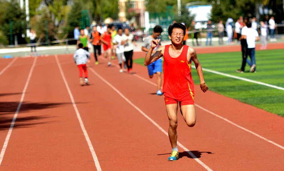 “各就各位,预备”随着裁判员发出的指令。运动员眼睛望向终点,那是豹子般的嗅觉,那是猎鹰般的惊敏。发令枪响,奔向终点,奔向胜利。