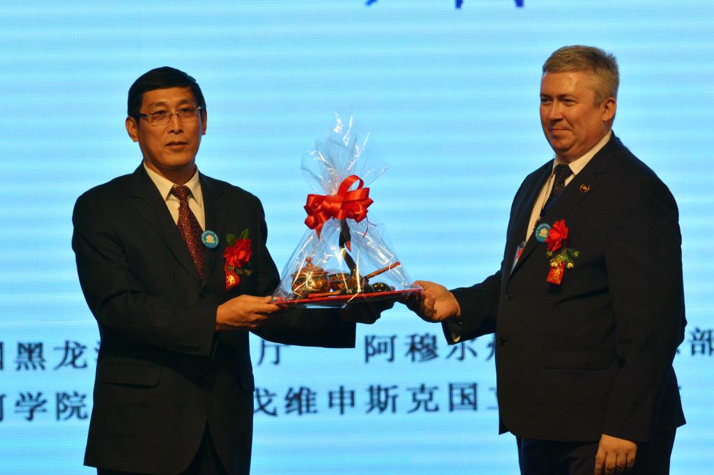 俄罗斯布拉戈维申斯克国立师范大学副校长基列耶夫·阿列克谢特别向活动的承办方黑河学院赠送了象征中俄友好的礼物。