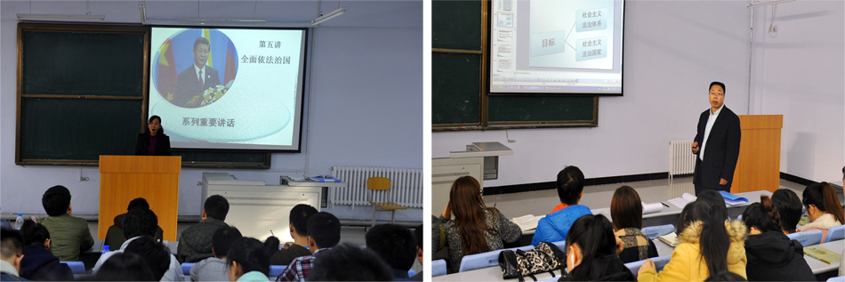 刘经纬教授首先深入课堂,听取了滕培香、蔡传家两位教师讲授的“全面依法治国”专题。在座谈会上,思想政治理论课教学科研部教师介绍了“专题辅导课”讲授情况和思想政治理论课建设情况,并与刘教授就如何进一步提高教学效果进行了交流;学生代表在座谈中畅谈了对“专题辅导课”的认识和学习感受,认为“专题辅导课”能够让青年学生系统地了解新形势下党和国家事业发展的一系列重大理论和现实问题,全面掌握以习近平同志为总书记的新一届中央领导集体的执政理念、工作思路,这些正是青年学生最需要了解的东西。