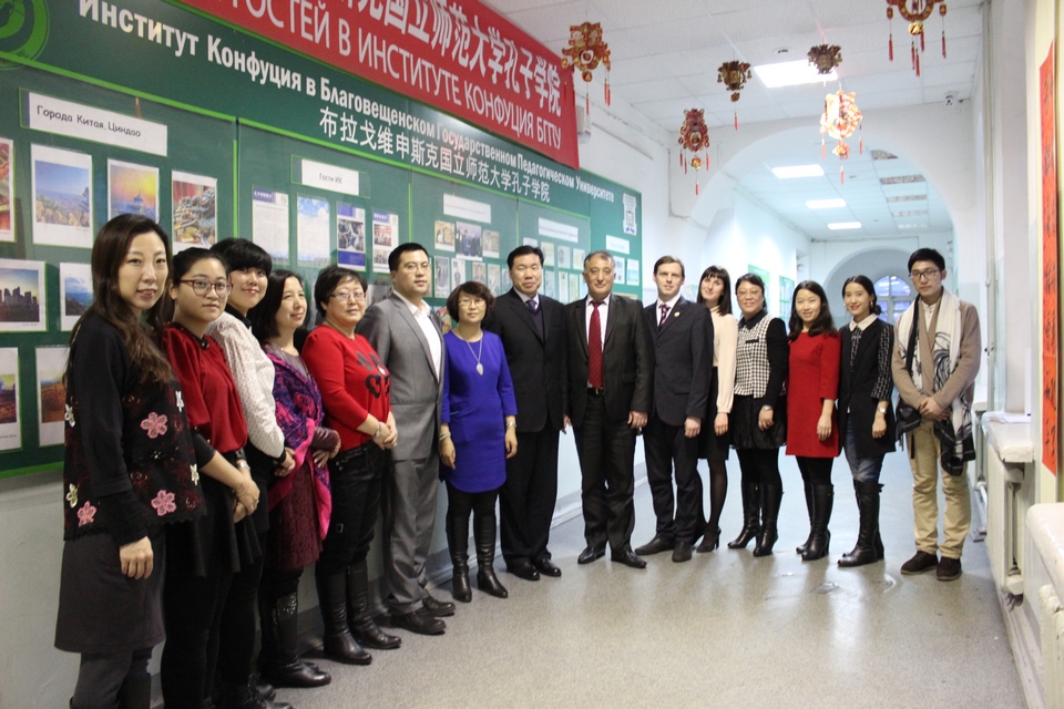会后,校长贯昌福在孔子学院中方和俄方院长的陪同下参观孔子学院并与全体教师座谈,他指出,我校与布拉戈维申斯克国立师范大学共建的孔子学院成立8年来,在教授汉语和传播中国文化方面取得了较大的成绩,得到了阿穆尔州民众的认可,在全球孔子学院中也享有盛誉。