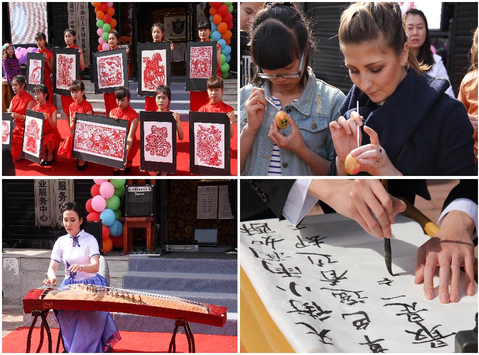 活动中,我校汉语国际教育专业学生结合专业特色展示了精湛的才艺,精彩纷呈的太极拳表演,诠释了中国传统武术的精髓;余音袅袅的古筝演奏与苍劲有力的书法完美结合,彰显出中国有声之乐与有形之字的无穷魅力;剪纸、彩蛋画展现出古老手工艺术的现代内涵;由俄罗斯青年表演的中文歌曲和电吉他演奏,洋溢着火热的青春激情。精彩绝伦的表演博得了阵阵掌声,使现场观众近距离感受了中俄不同民族、不同风格的艺术魅力。
