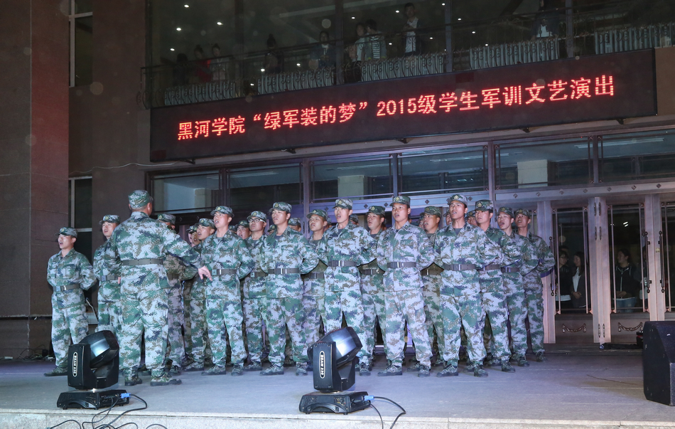 本网讯(特约记者 梁云婴)5月14日晚,学校2015级学生军训文艺晚会在明德楼前隆重举行。校党委副书记杨宏,学生工作部·武装部副部长王国华出席活动。黑河军分区65951部队全体承训官兵及2015级参训学生共同观看演出。