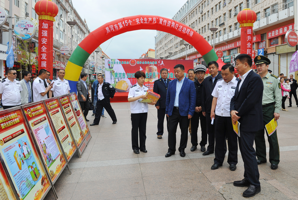 活动现场,黑河市50余家单位设立了安全知识和事故案例图片展、板报展,13个单位设立了法律法规咨询台,8个部门出动了流动宣传车,通过多种形式开展安全生产教育,向群众宣传安全法律法规和安全生产相关政策措施,普及安全知识,提高民众安全意识。