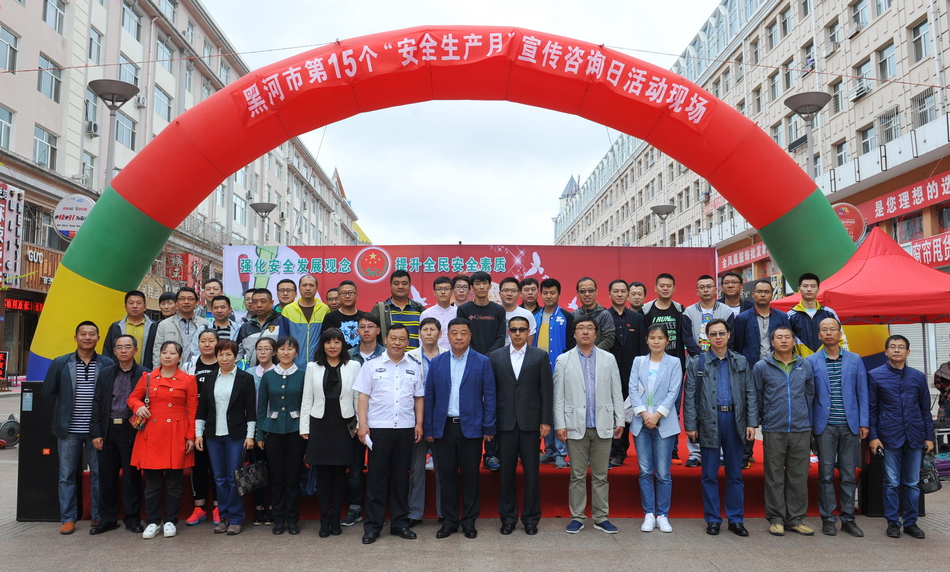 本网讯(记者 何振东)今年6月是全国第十五个“安全生产月”,为传播法治文化,普及安全知识,形成关注安全、关爱生命、依法治安的浓厚氛围,6月16日上午,黑河市人民政府安委会、爱辉区人民政府安委会、边境经济合作区管委会安委会在中央商业步行街举行了以“强化安全发展理念 提升全民安全素质”为主题的2016年黑河市“安全生产月”宣传咨询活动。黑河市市委常委、副市长、市安委会副主任姚龙,黑河学院副校长车永宏等领导出席活动启动仪式,我校各部门负责人和安全员参加了此次活动。