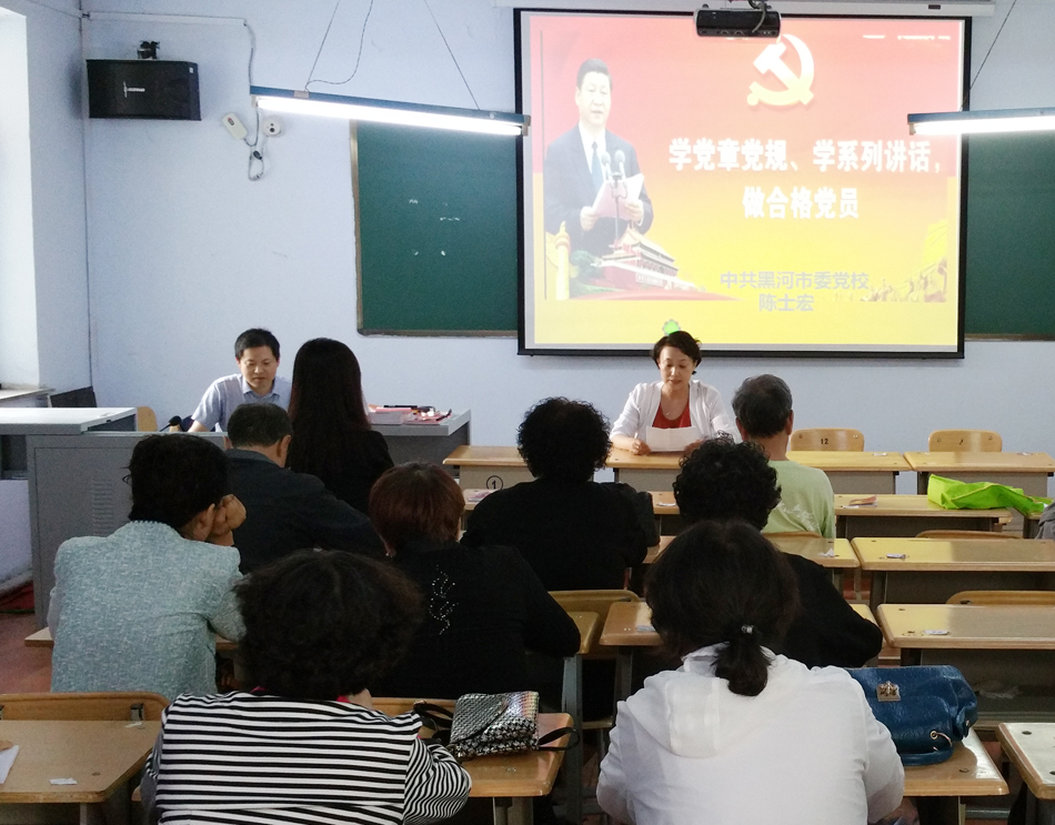 本网讯(特约记者吴庆云)近日,离退休工作处党总支邀请黑河市委党校陈士宏教授,为离退休党员作了题为《学党章党规、学系列讲话、做合格党员》的专题讲座,近40名老党员参加了活动。讲座由离退休工作处党总支书记孙宝玲主持。