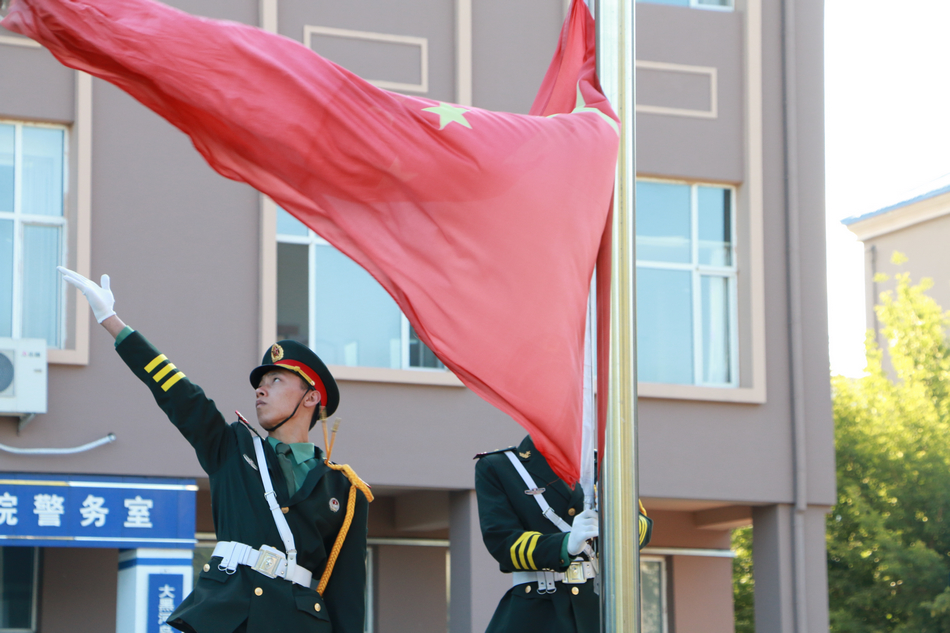 6时40分整,随着校国旗护卫队整齐的队伍、铿锵的步伐,在激昂雄壮的国歌声中,鲜艳的五星红旗冉冉升起,全体师生肃立注目。