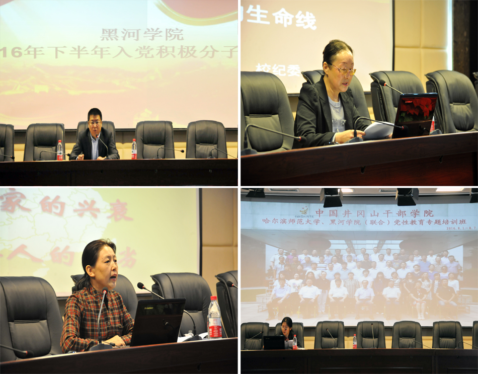 在为期两天的培训中,学校党委委员、组织部部长邹辉,学校纪委副书记、纪检监察处处长阮放,思想政治理论课教研部主任、党支部书记姜丽萍,教育科学学院党总支书记、副院长闫英分别作了专题讲座。