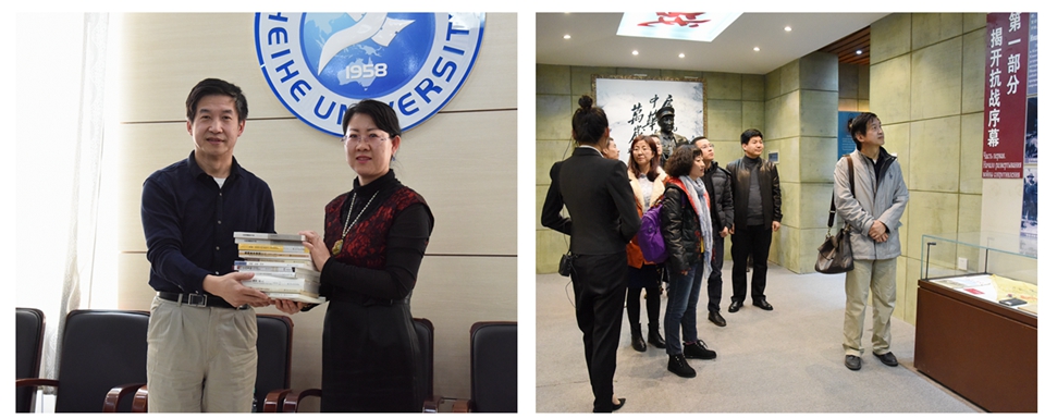 会后,杨念群主任将中国人民大学清史研究所部分教师出版的书籍赠与我校师生,并与参会人员一同参观了我校中苏抗战历史纪念馆。