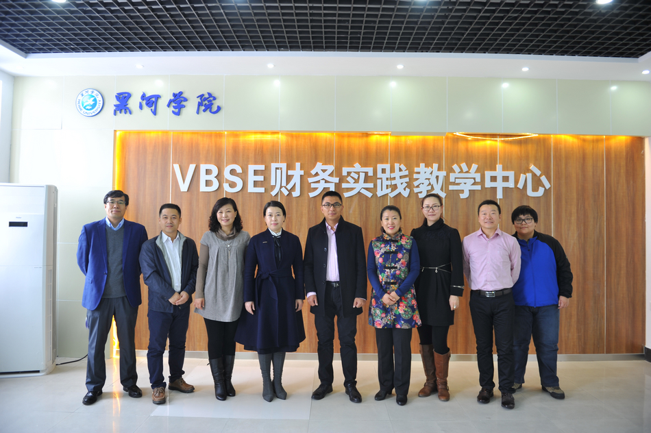 新道科技股份有限公司伙伴联盟部总经理范广辉一行实地参观了我校经济管理学院VBSE财务实践教学中心、商务环境模拟实训室、国际物流模拟实训室及对俄合作交流成果展厅。