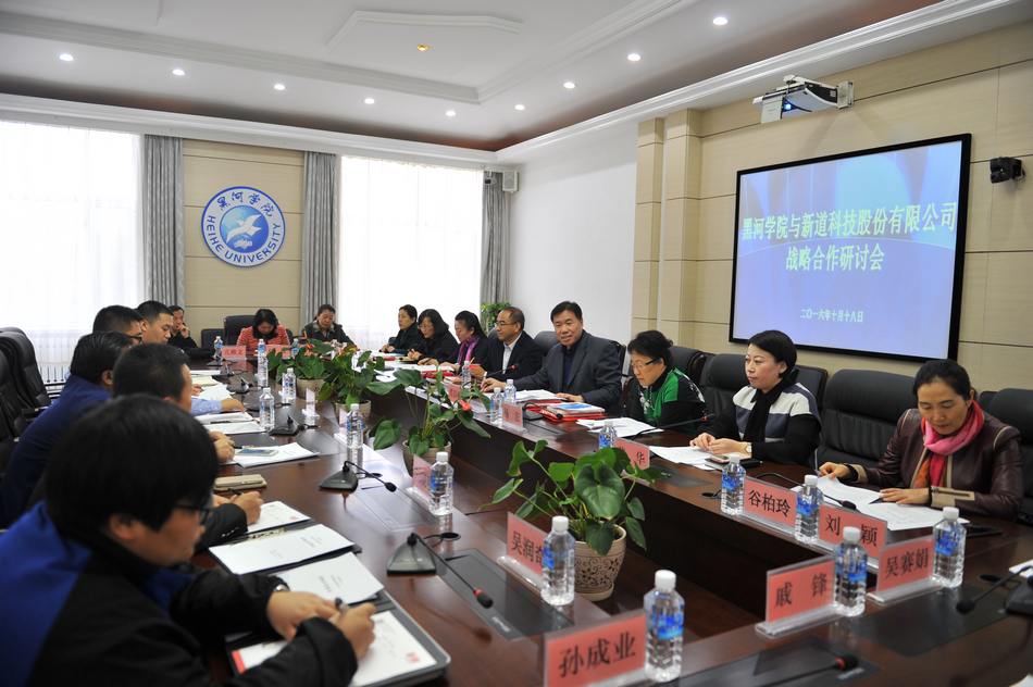 校长贯昌福说,新道科技股份有限公司是国内著名的高校“创新创业教育”合作伙伴,也是商科实践教学方面的领航者,在与高校协作创新推动“产学结合、实践育人”方面有着丰富的经验。他指出,新道科技股份有限公司实践育人的理念与黑河学院建设应用型本科院校的发展目标是一致的,双方在应用型人才培养、实践教学、创新创业教育等领域有着广泛的合作前景。他希望新道科技股份有限公司能够充分发挥实践育人方面的能力和优势,为我校的转型发展和创新创业教育提供宝贵的经验和可借鉴的研究成果,用新科技实现实践教学平台和创新创业人才培养等方面的新突破,不断提升人才培育的质量和水平,创造产教融合、校企合作的新典范。
