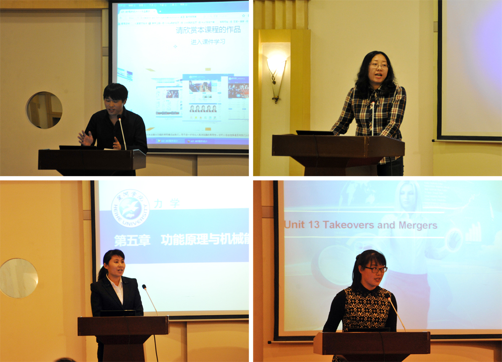 本次比赛共有11个学院29门课程参加,经过初审、复审、现场制作等环节的激烈角逐,19门课程的课件进入决赛,每名选手围绕教学目标精心准备,利用图、文、音、视、动画等形式,向大家展示一个个精彩纷呈教学课件的设计构思和使用理念。最终,计算机与信息工程学院教师李伦彬等7人合作的课件《ASP.NET程序设计》脱颖而出荣获一等奖;计算机与信息工程学院教师韩雪等3人合作的《C语言程序设计》、理学院教师张秀平等6人合作的《力学》、外国语学院教师郭丽莉等3人合作的《商务综合英语4》获得二等奖;通识教育学院教师吕丹等3人合作的《大学语文》、外国语学院教师戈秀兰等3人合作的《商务综合英语1》、通识教育学院教师李莹等3人合作的《大学英语1》、人文传媒学院教师常文硕等2人的《现代教育技术》获得三等奖。