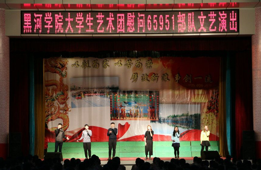 本网讯(特约记者 梁云婴)11月27日下午,我校大学生艺术团走进中国人民解放军65951部队驻地,为即将复员转业的老兵们献上了精心准备的文艺演出,用歌舞为退伍老兵送行,表达大学生对人民子弟兵的深情厚谊。