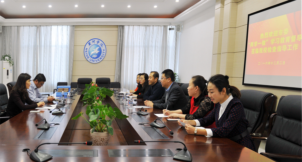 本网讯(记者王佳)12月2日上午,由黑河市委组织员办副主任于学军、黑河市纪委组织部副部长张海燕组成的黑河市委“两学一做”学习教育督导组来我校检查督导“两学一做”学习教育开展情况。党委副书记李廷栋,党委委员、组织部部长邹辉陪同检查。
