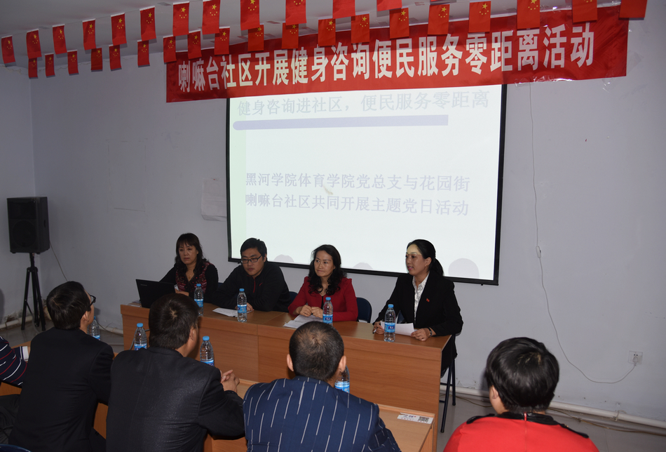 本网讯(记者 何振东)为扎实推进“两学一做”学习教育的开展,提高社区居民的健康意识,普及健康知识,传播健康理念,12月7日,体育学院党总支走进喇嘛台社区开展了“健身咨询进社区 便民服务零距离”主题党日活动。