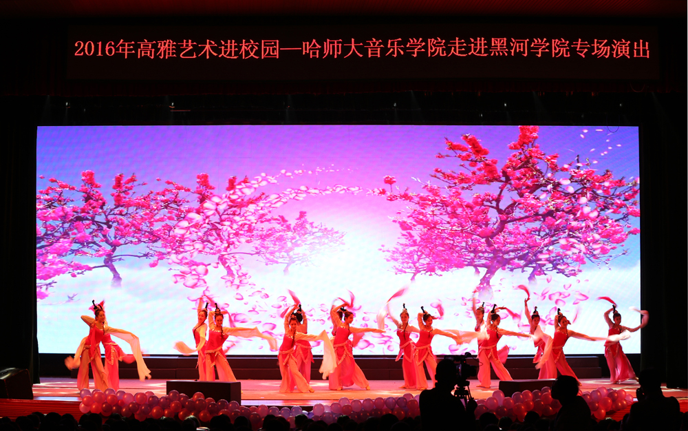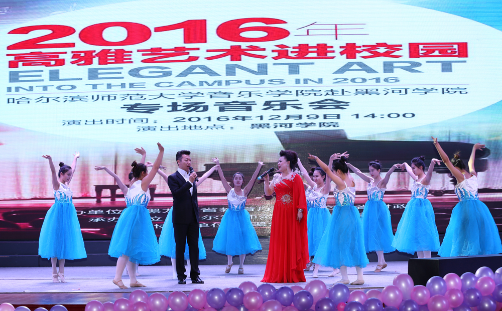 演出团由哈师大音乐学院中青年骨干教师和学生舞蹈团共计40余名师生组成,演唱团克服旅途劳累以极大的热情、精湛艺术形式,为我校广大师生奉献了一场精彩的高雅艺术视听盛宴。