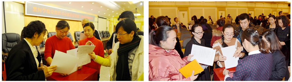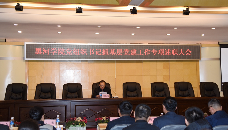本网讯(记者 赵宇 摄影 何振东)12月26日下午,学校在明德楼多功能厅召开了2016年度党组织书记抓基层党建工作专项述职大会。黑河市基层办主任郑海波、市委组织部电教中心主任王凯,学校党委班子成员,纪检监察处、党委(校长)办公室、组织部、宣传统战部、学工部、团委、工会等部门工作人员,各党总支委员、党支部书记,辅导员130余人参加会议。会议由党委副书记李廷栋主持。