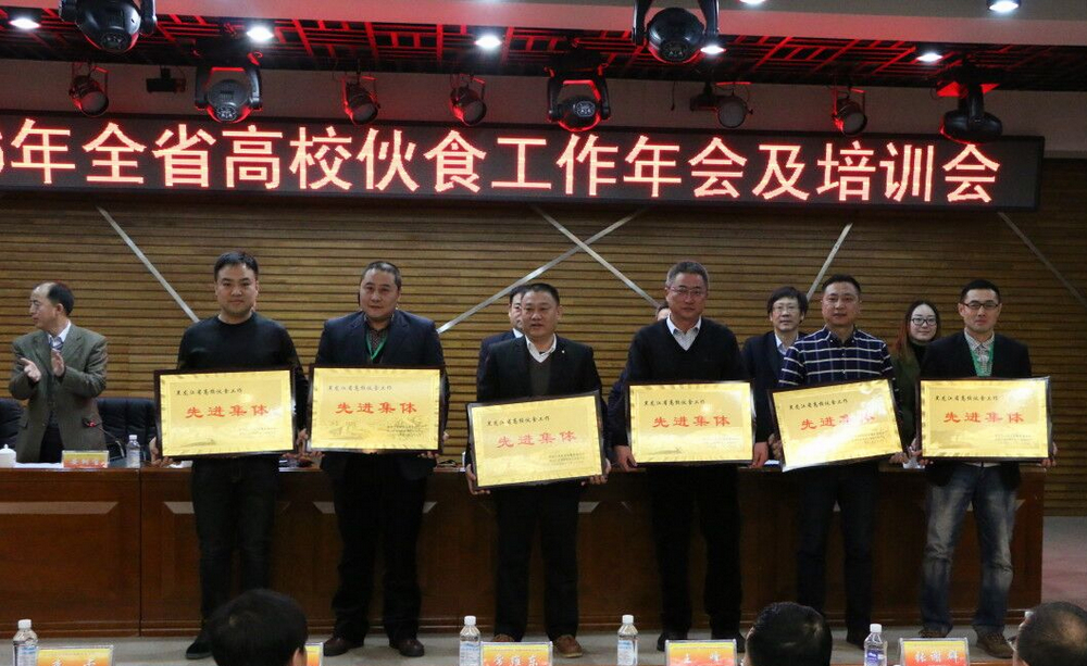 本网讯(特约记者 唐瑶)12月29日,黑龙江省高校伙食专业委员会2016年年会及培训会在哈尔滨师范大学举行,表彰了一批我省高校伙食工作先进集体和先进工作者。我校后勤管理处餐饮服务中心被评为“高校伙食工作先进集体”,马墨南、郝作杰两名同志被评为“高校伙食工作先进工作者”。