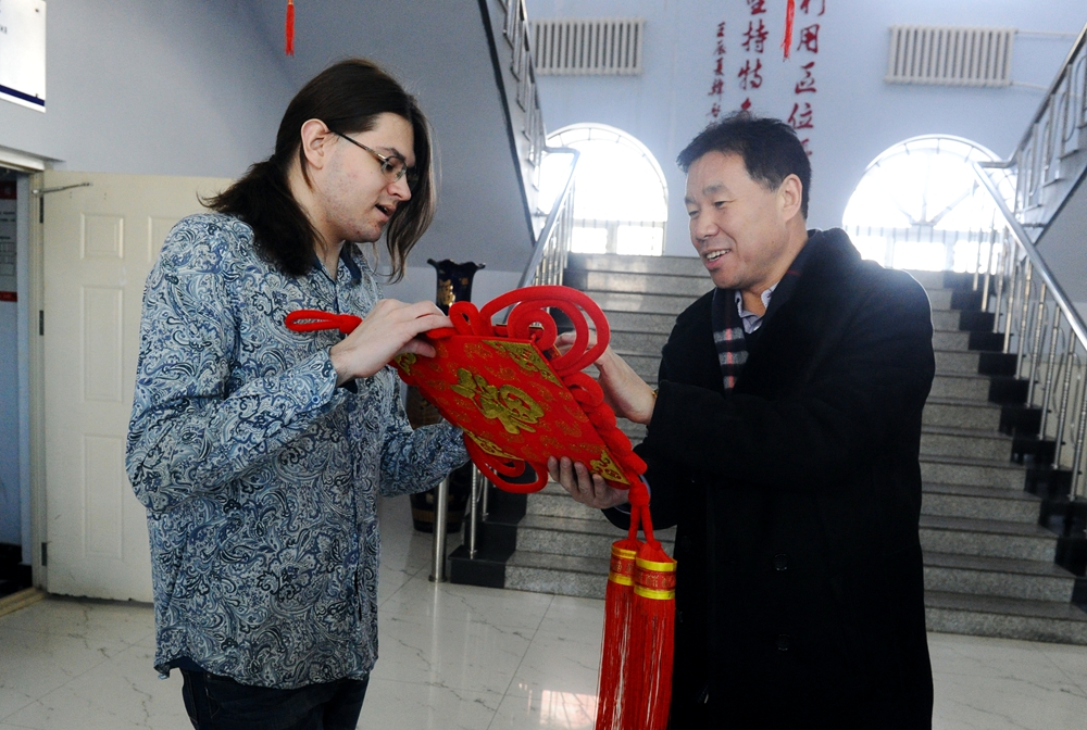 来到国际教育学院,贯校长一行看望了来自俄罗斯南乌拉尔的留学生丹尼尔,并代表学校送去了慰问品。贯校长叮嘱留学生要合理安排好假期的学习和生活,充分利用好这次在中国过春节的机会,好好感受中国传统节日的浓厚氛围,加深对中国文化的了解。