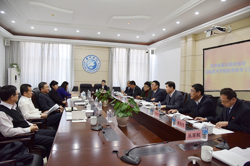 听取汇报后,谢宝禄市长发表重要讲话。他充分肯定我校党政领导班子带领全校师生不畏困难、励精图治所取得的成绩,并表示将一如既往地全力支持黑河学院的发展建设,同时对学校发展提出了指导意见:要坚守国家情怀,充分利用区位优势,加强对俄合作交流,积极引进和利用俄罗斯优质教育资源,进一步彰显办学特色;要坚守社会责任,瞄准地方需求,进一步优化学科专业设置,培养学生创业思维和创新能力,为黑河和龙江培养输送更多人才;要不忘黑河情结,密切市校合作,不断拓展产学研合作的深度和广度,推动科技成果转化,围绕经济社会发展中心工作,充分发挥人才支持和智力支撑作用。