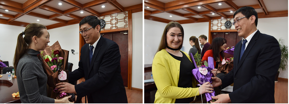 副校长张焕强代表学校向每位外籍女教师赠送鲜花,并致以节日问候,对全体外籍教师为学校对俄合作办学作出的重要贡献表示感谢。他表示,外籍教师在学校发展建设中发挥着重要作用,是学校教育教学科学发展的重要推动者,是传播中俄文化的纽带桥梁,学校将一如既往的为外籍教师提供优越的工作、学习、生活环境,使外籍教师安心工作、快乐生活。