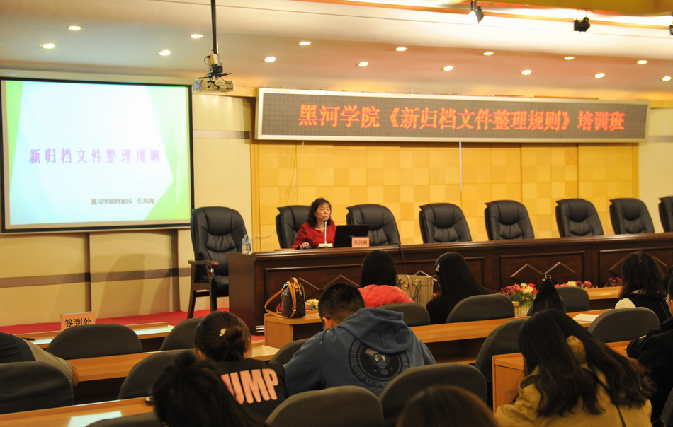 本网讯(特约记者 伦凤梅 摄影 魏辉辉)3月21日下午,学校在明德楼五楼多功能厅举办《新归档文件整理规则》培训班,进一步规范和统一我校文书档案整理工作,全校专、兼职档案员参加培训。