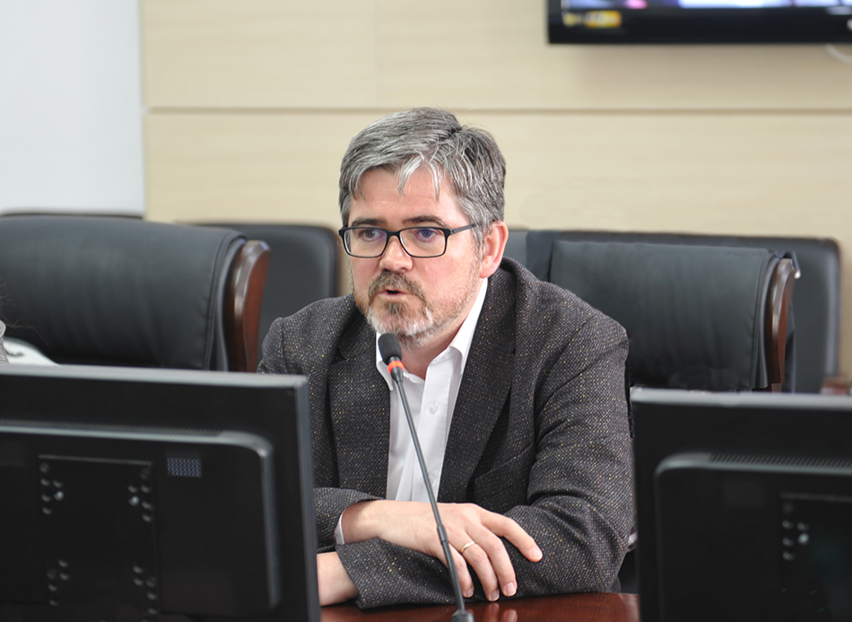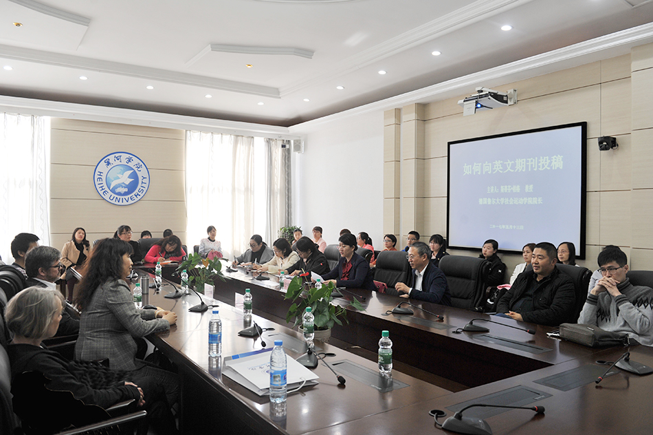 本网讯(记者 何振东)为进一步提高我校教师在英文期刊发表论文的质量和数量,提升学术研究水平,5月13日下午,学校特邀德国鲁尔大学社会运动学院院长斯蒂芬•柏格教授来我校作学术报告。科研处处长宁艳红主持会议,外国语学院、通识教育学院、文化旅游学院、远东研究院相关专业教师及各学院科研秘书参加会议。