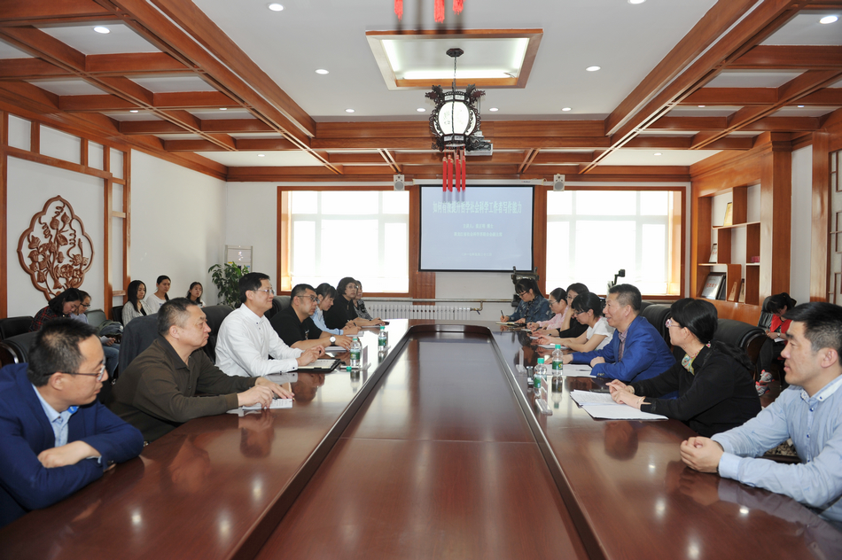 本网讯(记者 何振东)为提高我校教师学术论文撰写质量,提升哲学社会科学研究水平,增强服务地方经济社会能力,5月22日,学校特邀黑龙江省社会科学界联合会副主席张正明博士在明德楼三楼会议室为我校教师作了题为《如何有效提升哲学社会科学作者写作能力》的专题报告,报告会由副校长丛喜权主持。