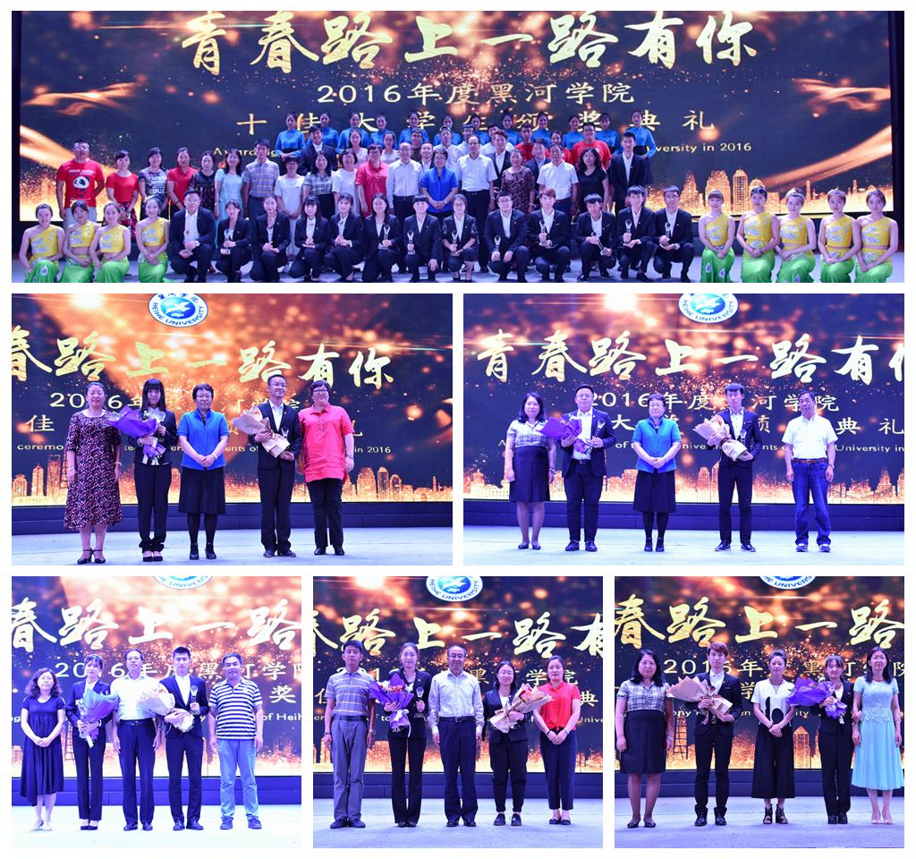 通过VCR镜头和现场采访,师生们全面了解了十佳大学生以朴实无华的话语、坚定执着的信念、不屈不挠的品格、润物无声的行动传递校园正能量的感人事迹。两个小时的颁奖典礼中,北疆学子用励志、奋斗、拼搏的精神为现场师生讲述着一个又一个感人至深、催人奋进的故事。人文传媒学院王宇鑫,理学院徐晓东、王蕾,文化旅游学院王看,体育学院王凤鸣,经济管理学院周盼,计算机与信息工程学院苏启航、张帆,国际教育学院王雪丹,教育科学学院黄国新10名同学当选为2016年度感动校园“十佳大学生”。在全场观众的见证之下,与会领导为“十佳大学生”及提名奖获得者颁发了奖杯和证书。获奖大学生诵读《今天,我们这样爱国》,专注的目光,慷锵有力的誓言凝聚了同学们立志成才,报效祖国的坚定与决心。