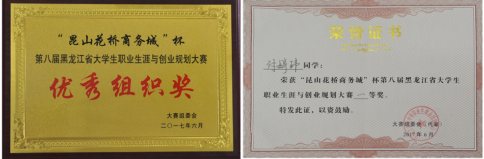 本网讯(学生记者 吴琦)6月17日,由黑龙江省教育厅主办,齐齐哈尔大学承办的“昆山花桥商务城”杯第八届黑龙江省大学生职业生涯与创业规划大赛决赛落下帷幕,我校教育科学学院学生付婷玮荣获一等奖,学校荣获优秀组织奖。