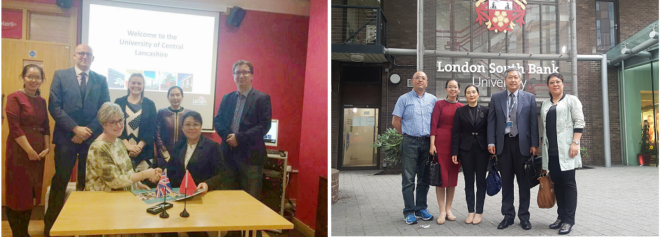 本网讯(特约记者 谷柏玲)6月12日至15日,我校国际交流合作处处长刘昱洁、国际教育学院院长谷柏玲、外国语学院副院长戈秀兰一行三人访问英国中央兰开夏大学和伦敦南岸大学,就我校与英国两所高校合作的具体事宜进行友好商谈。