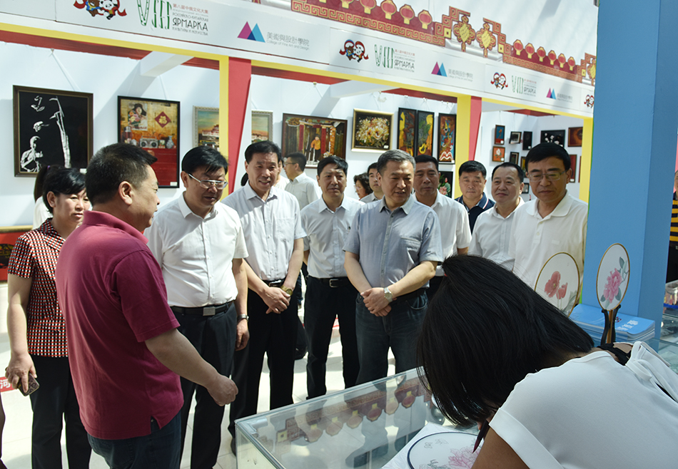 本网讯(记者 何振东)6月22日中俄文化大集开幕当日,黑河市委书记秦恩亭,市委副书记、市长谢宝禄,市委常委、副市长孙恒义,市委常委、市委秘书长张崇义,市人大常委会副主任屈树广、副市长陈晓杰、市政协副主席白树生等领导在校党委书记曹百瑛教授、校长贯昌福教授、副校长车永宏教授的陪同下参观我校学生艺术实践作品展。