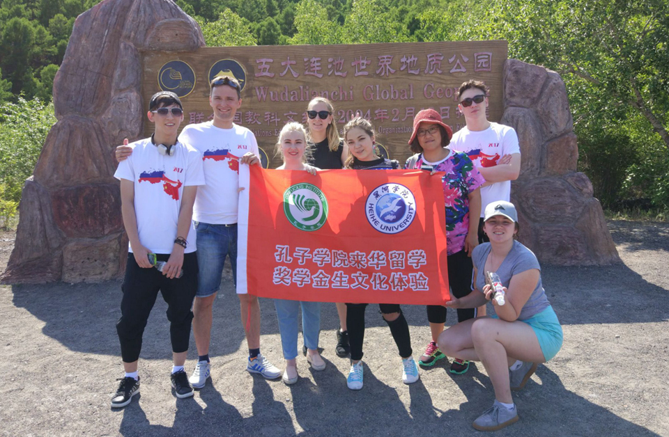 本网讯(特约记者 姜皓)为了加深孔子学院奖学金生对中华文化的认识和了解,促进中华传统文化的培育和弘扬,近日,学校7名来自俄罗斯的孔子学院奖学金生在国际教育学院两位老师的带领下到五大连池市集中开展文化体验活动。学生们先后到五大连池市老黑山、北药泉、龙门石寨、白龙洞、温泊等地进行了参观。