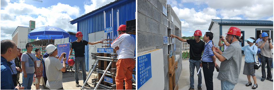与会人员观摩图书馆实体工程质量和安全管理情况