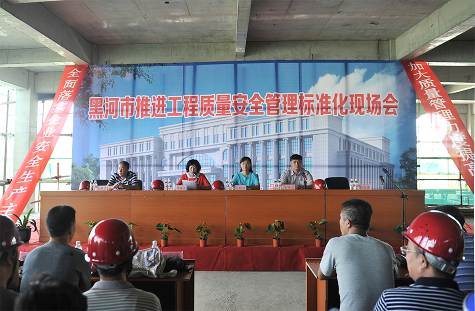 会上,我校后勤管理处处长王守文对图书馆项目的工程质量、安全防范、文明施工等方面情况作了介绍;黑河市城乡建设局副局长王佳红从加强领导、落实责任、完善工作机制等方面对我市建设工程质量安全标准化工作进行了指导;工程质量监督管理站站长毕淑杰、建筑安全监督管理站站长郭新君分别就建设工程质量和安全监督工作进行安排部署;建设、施工、监理单位总结推广了工程质量安全管理标准化的经验和做法。