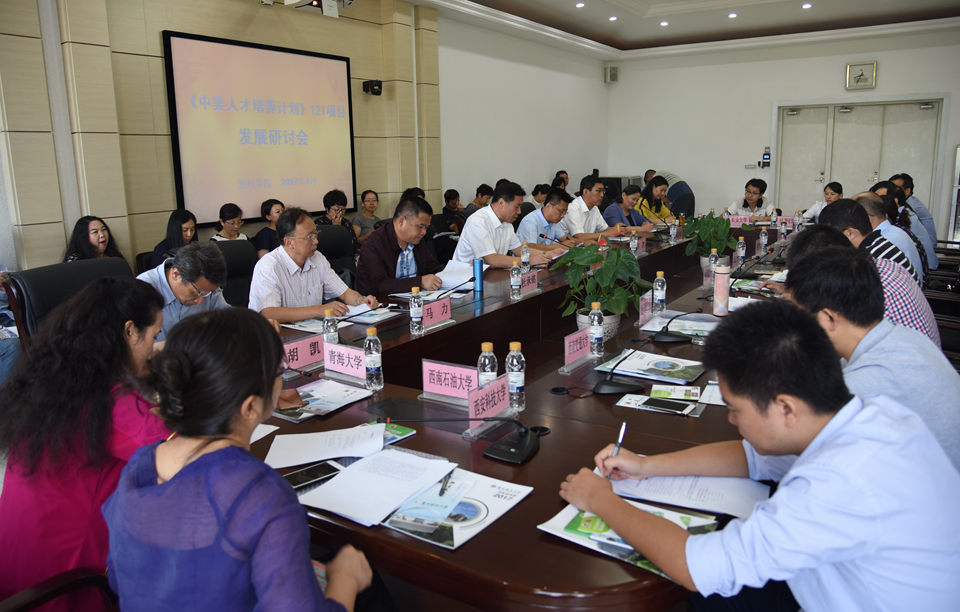 本网讯(记者 赵宇 学生记者 刘帅 周千君)8月22日,《中美人才培养计划》121项目发展研讨会在我校明德楼二楼会议室召开,中教国际交流中心主任印凯、121项目总监王颖,我校校长贯昌福、副校长张焕强与来自华侨大学、云南师范大学、广东财经大学、西南交通大学等17所高校的33名专家学者参加研讨会,共同探讨《中美人才培养计划》如何开拓国际视野、促进中美学生交流、提升中美留学服务。会议由中教国际交流中心121项目总监王颖主持。