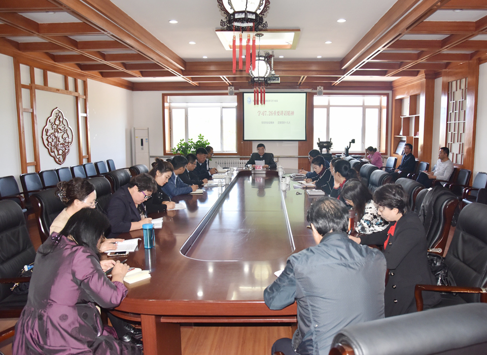 会上,曹百瑛书记传达了习近平总书记“7·26”讲话精神的主要内容,针对“7·26”讲话中“举什么旗 走什么路”“以什么样的精神状态”“担负什么样的历史使命”“实现什么样的奋斗目标”四个关键点进行深刻解读,并从政治、理论、实践三个维度分析了讲话的重大意义。