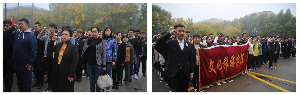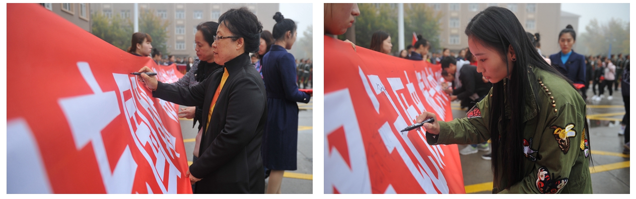 “铭记祖国赋予的尊严,铭记人民给予的荣耀,铭记父母寄予的希望,铭记恩师赐予的教诲......”参加仪式的3000余名师生在国旗下宣誓,并在印有“艰苦奋斗、自强不息、创新发展、育人戍疆、勿忘国耻、铭记历史、振兴中华、开创未来”的红色条幅上签字。