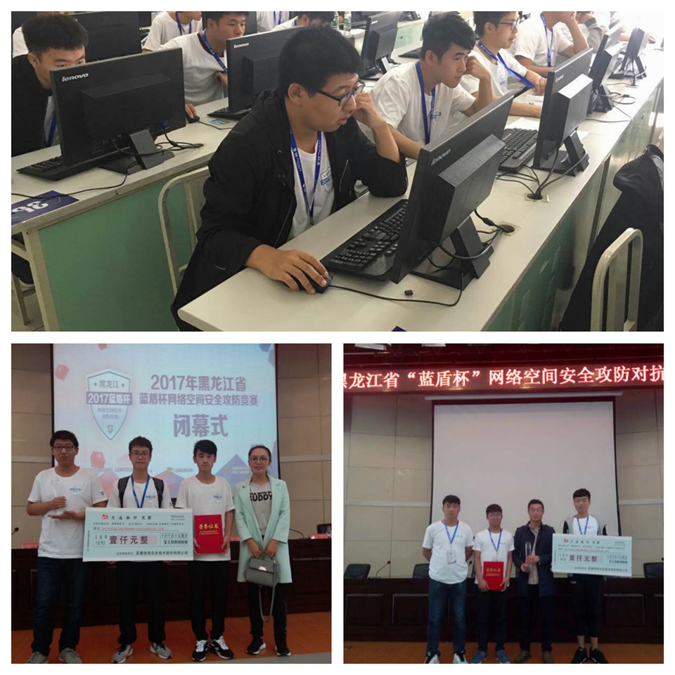 本网讯(特约记者 李伦彬)9月19日,由黑龙江省互联网信息办公室、黑龙江省教育厅、黑龙江省公安厅联合主办的“蓝盾杯”网络空间安全攻防竞赛在黑龙江科技大学落下帷幕,来自全省20所高校的44支队伍参与比赛,我校计算机与信息工程学院两支代表队荣获大赛二等奖。